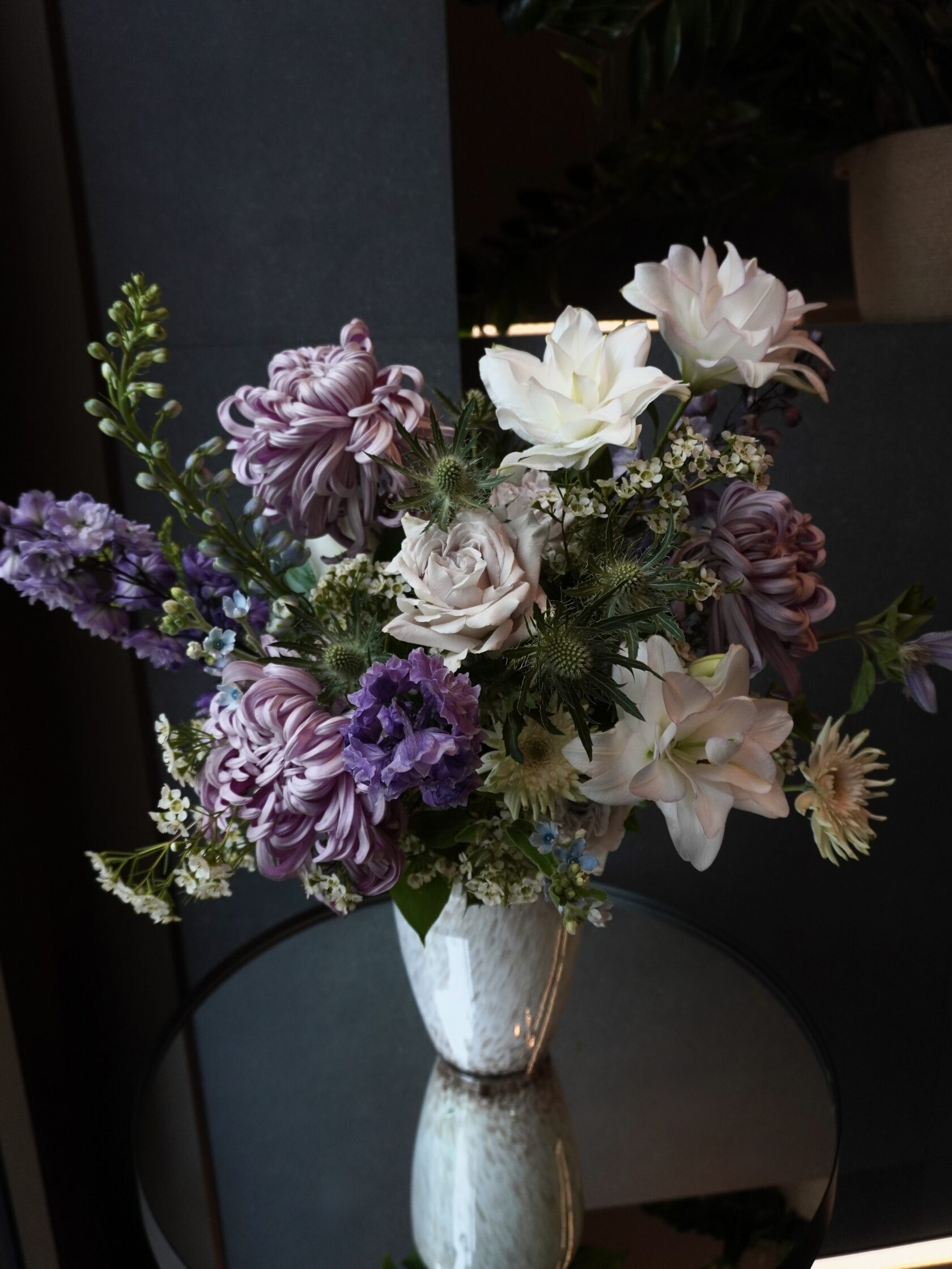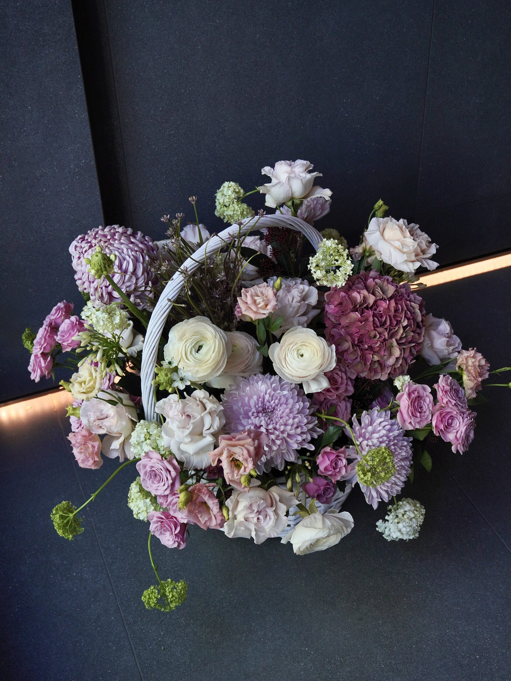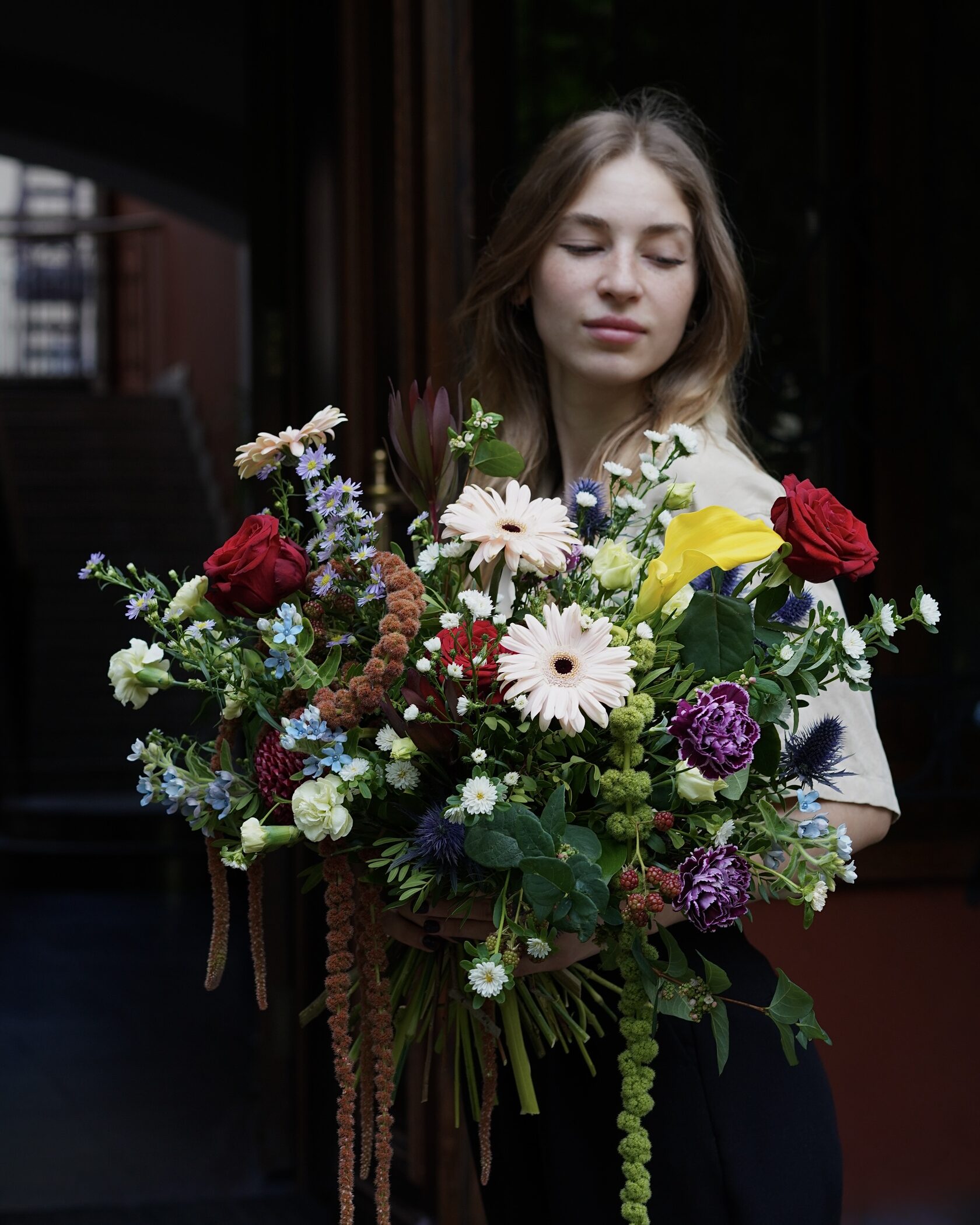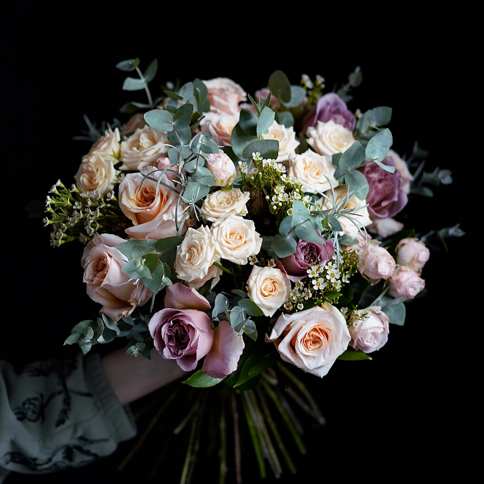 Букеты из каталога могут послужить вам вдохновением, а по вашему описанию он может быть видоизменен.